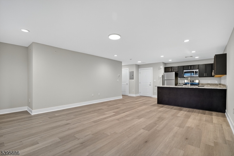 Welcome to Hillsborough Crossings Unit #207! This spacious second-floor 1-bedroom, 1.5-bath apartment offers 910 sq. ft. of beautifully finished living space. A bright open-concept layout with luxury plank-style flooring and abundant natural light creates an inviting, contemporary feel. The kitchen features granite countertops, stainless steel appliances, and rich espresso cabinetry. The expansive living and dining area provides plenty of room for entertaining or working from home. A private bedroom suite includes a full bath with elegant tile finishes, and a convenient powder room adds flexibility for guests. Additional highlights include an in-unit stackable washer and dryer, energy-efficient HVAC, secure building entry, and ample on-site parking. Ideally located within the newly constructed Hillsborough Crossings mixed-use community along Route 206, residents enjoy easy access to shopping, dining, and major highways offering stylish, low-maintenance living in a prime location.
